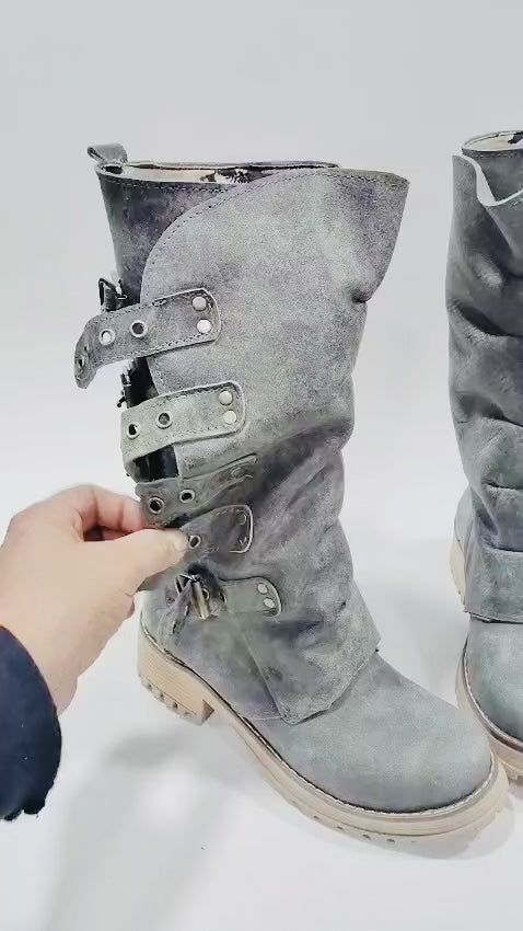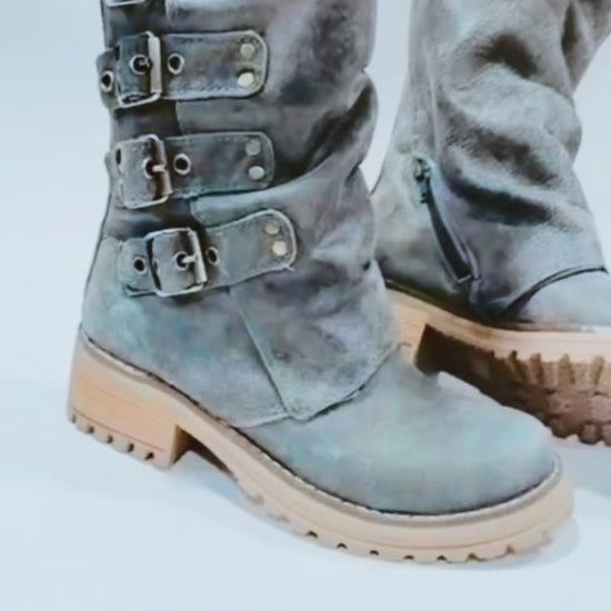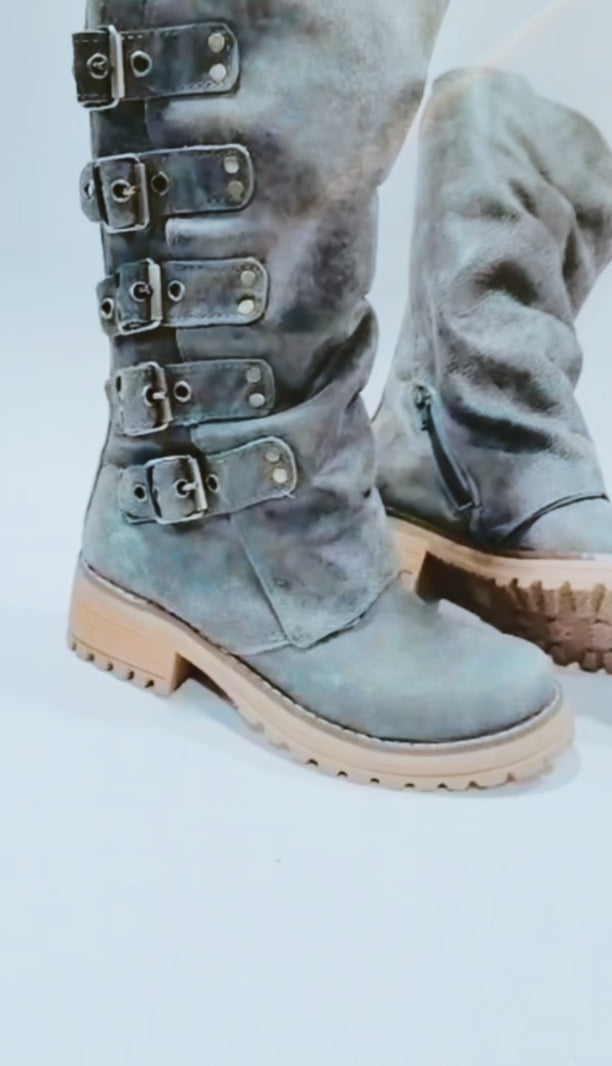 Descubre la bota perla gris edición especial de 35 cm con 5 hebillas premium. Elaborada con cuero gris desgastado, su caña más larga que la tradicional brinda un estilo único. Cuenta con cierre interior, cordones ajustables, suela de goma y plantilla de badana natural para mayor comodidad. ¡Edición limitada!