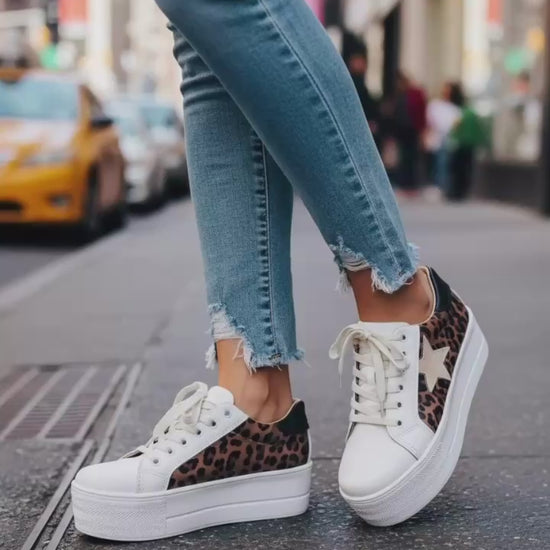 Estas zapatillas combinan la elegancia del cuero blanco con el exótico estampado de animal print en leopardo. Con una suela de 6 cm de goma y el interior de badana natural, te brindarán comodidad y estilo a partes iguales. Ideal para quienes buscan destacar con un toque sutil de atrevimiento.