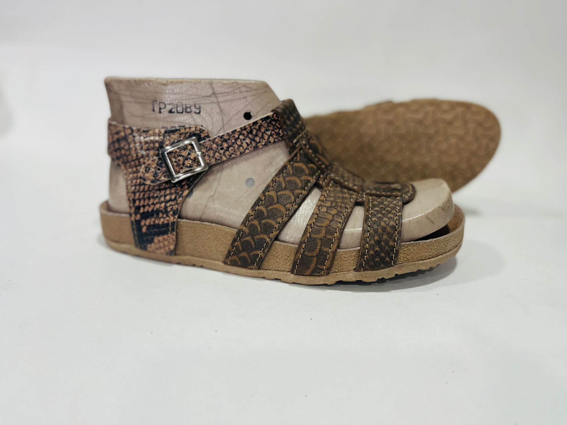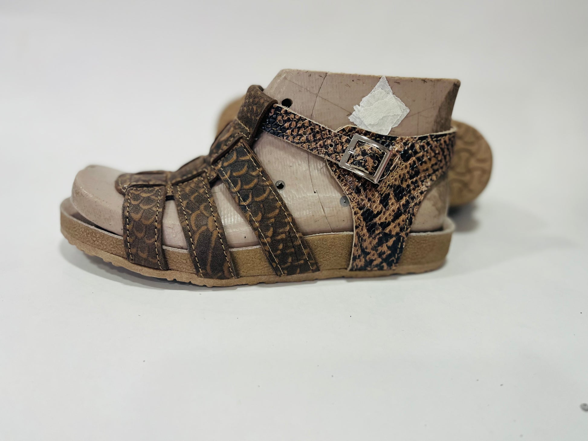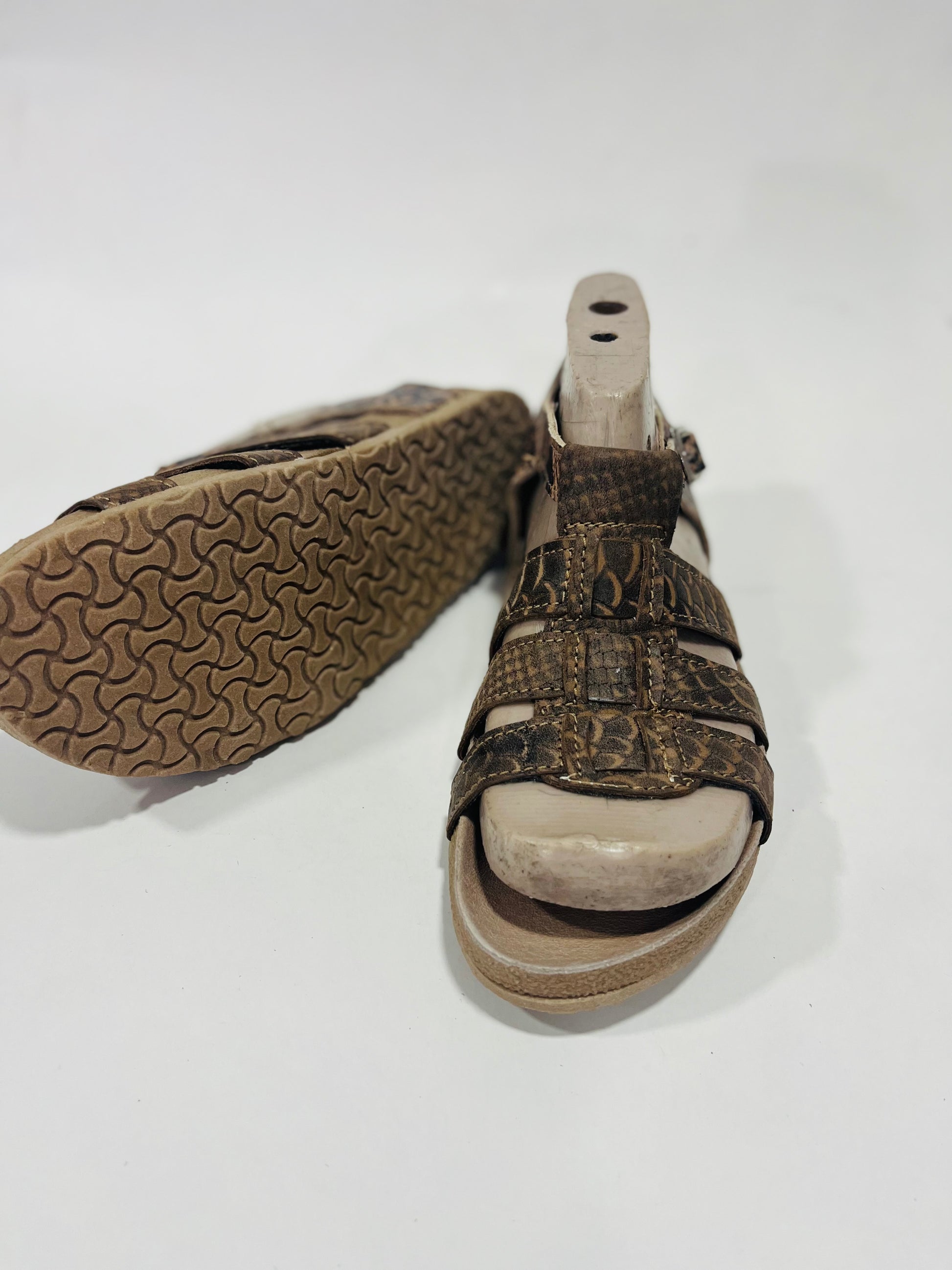 Cuero textura reptil café atrás textura pitón badana natural suela de goma hebillas metálicas