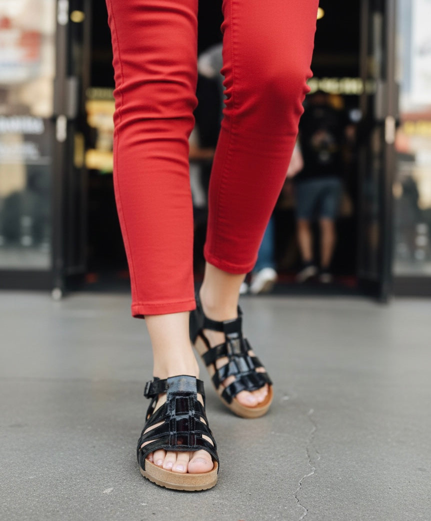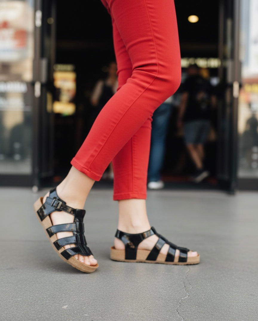 La sandalia de cuero Richatto negro con suela baja está fabricada en cuero natural, lo que asegura durabilidad y confort. Su suela de goma proporciona tracción adecuada, mientras que las hebillas metálicas añaden un toque de elegancia. Con un diseño casi plano y forro de badana natural, estas sandalias garantizan una comodidad superior durante su uso prolongado.