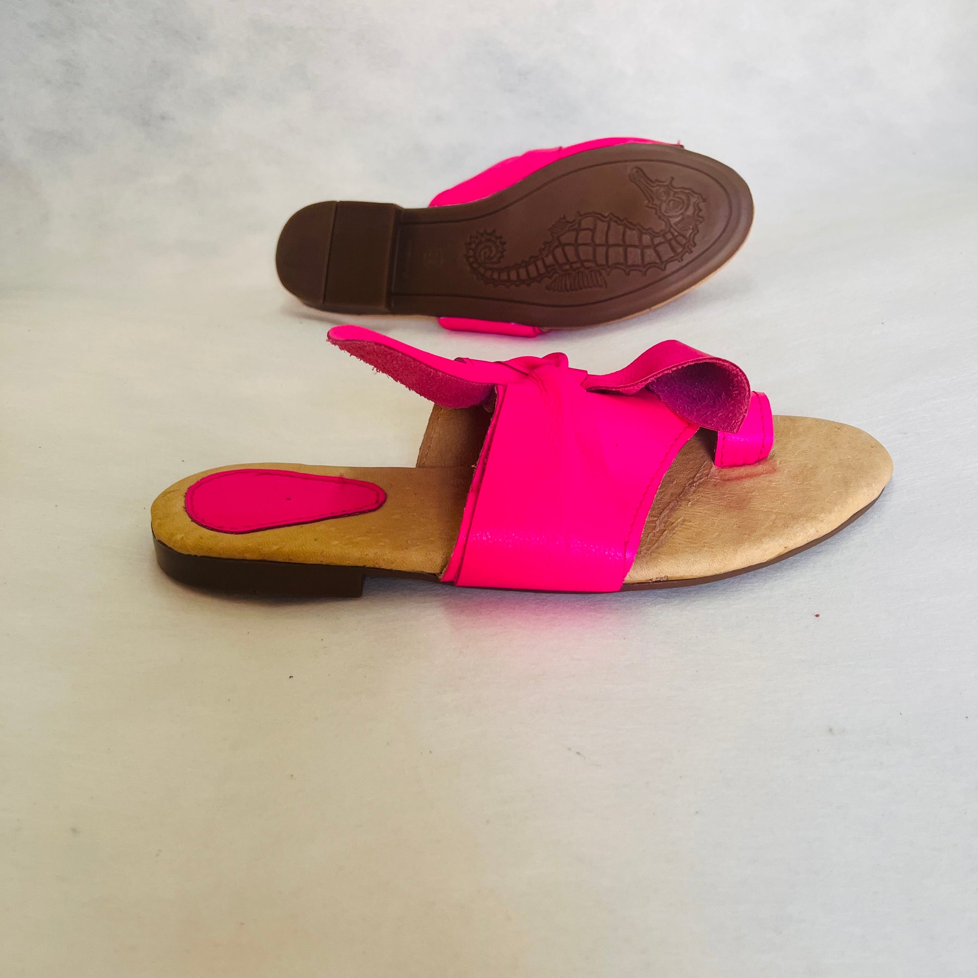 La sandalia flato fuccia de cuero liso combina un diseño moderno con la funcionalidad. Confeccionada en cuero de alta calidad, presenta una plantilla acolchada de badana natural que proporciona comodidad prolongada. Su anillo de cuero para el dedo gordo asegura un ajuste seguro, ideal para un uso diario.