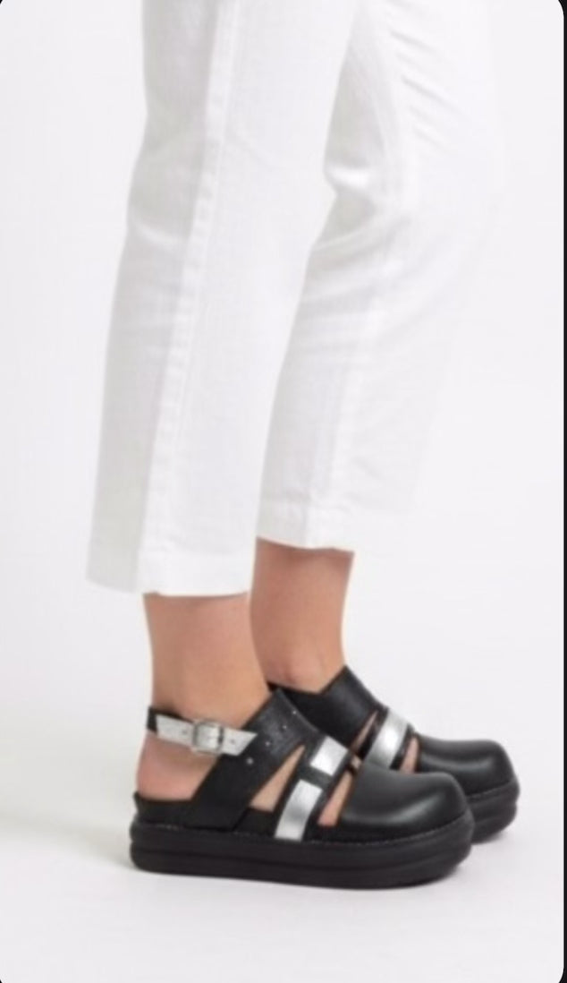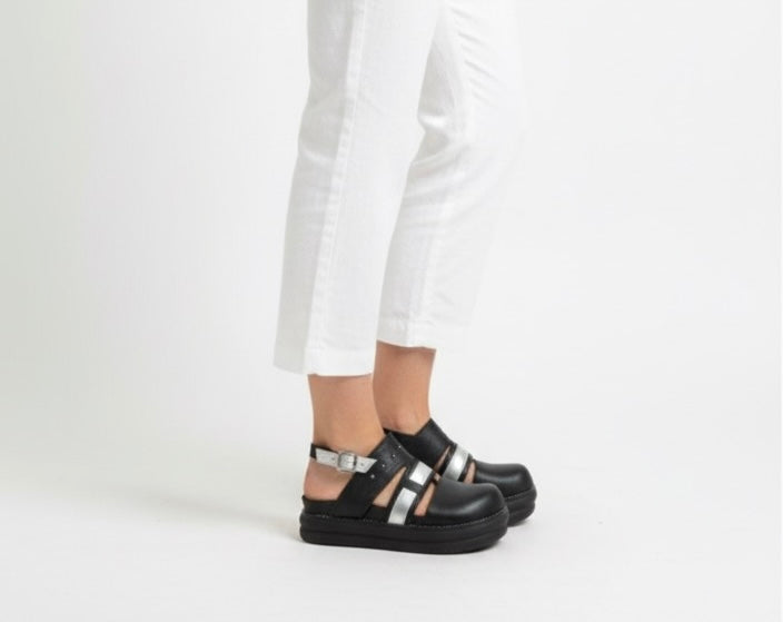 Esta sandalia de punta cerrada de cuero flowter es perfecta para cualquier ocasión. La correa en el tobillo se ajusta con hebillas para brindar un calce cómodo y seguro. La suela de goma forrada con badana natural garantiza durabilidad y comodidad en cada paso. ¡Haz una declaración con estilo y confort!