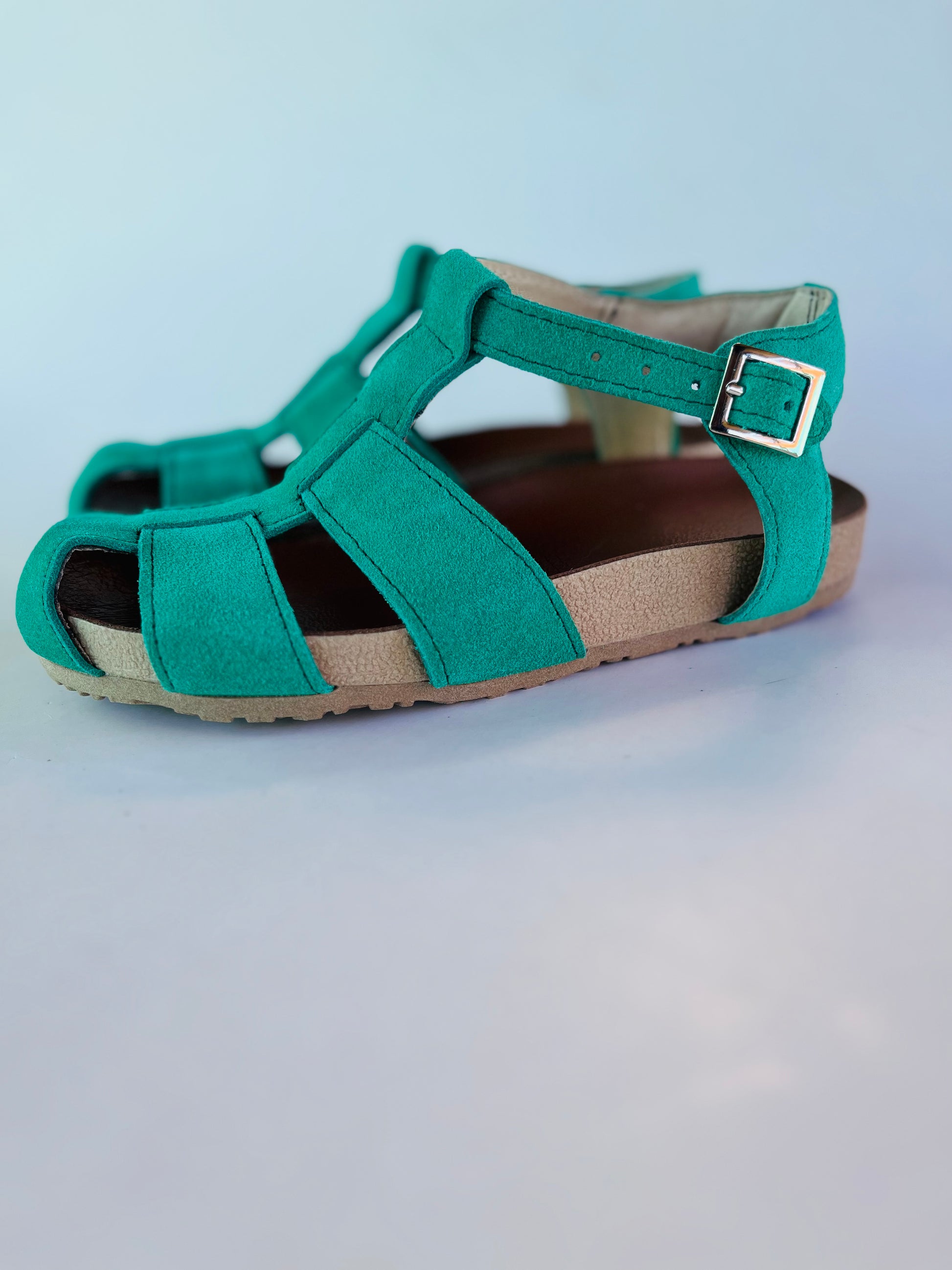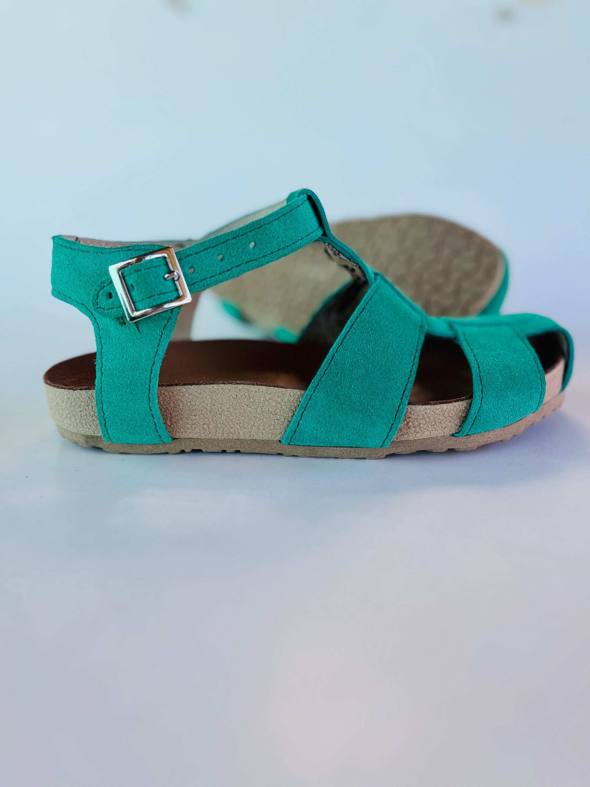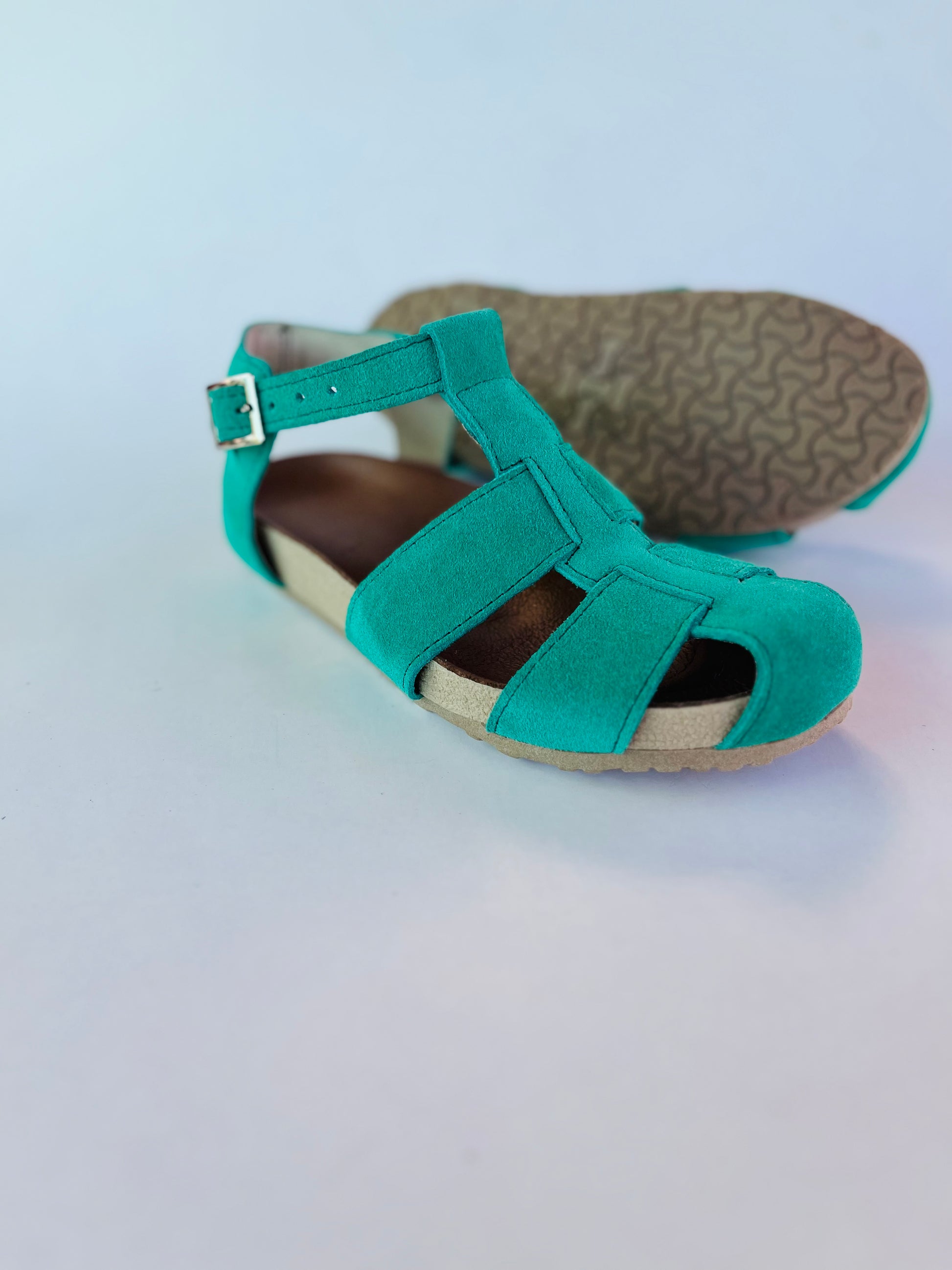 Sandalia Spider Cuero Reno Turquesa Mujer - Punta Plana Hebillas